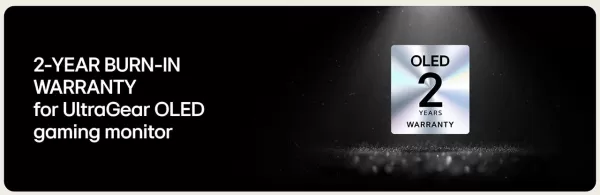 LGは焼き付きに対応する2年間の保証を提供しており、OLED購入者の主な懸念に対処しています。このような保証は希少であり、この2年間の焼き付き保護はLGのゲーミングモニターにのみ適用され、OLEDテレビには適用されません。