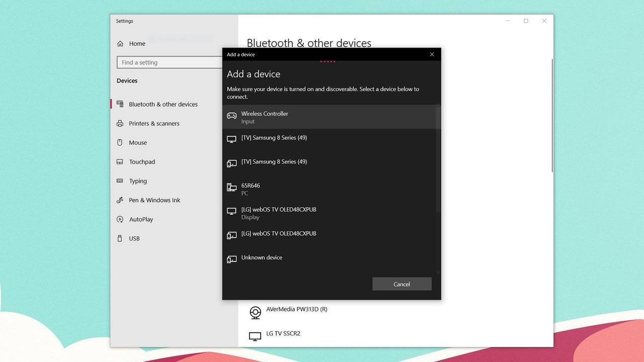 在您的PC上,从可发现的蓝牙设备列表中选择您的DualSense控制器